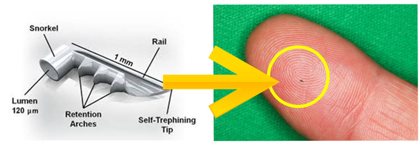 iStent®は、長さ横1mm縦0.12mmの非常に小さいデバイスです。緑内障手術は線維柱帯切除やEx-PRESS手術など各種の手術がありますが、今までの手術は目への侵襲が大きい手術でありました。